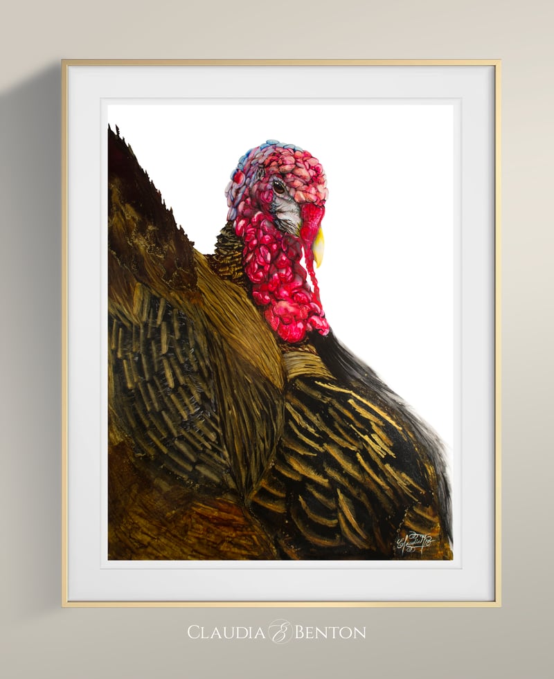 This piece marks the debut of a wild turkey in Benton's collection, created with alcohol ink and mixed media on bright white Legion heavy Yupo synthetic paper, 144 lb (390 gms).